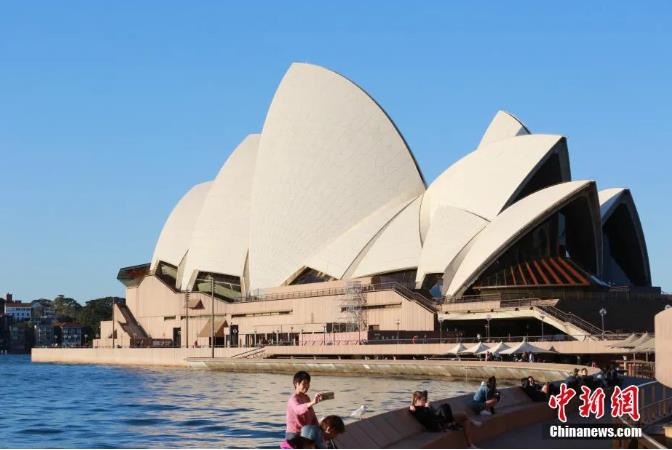 澳大利亚近期多州、领地有限度放宽限制,民众生活渐渐复苏。图为行人在悉尼歌剧院外小憩。(中新社记者 陶社兰 摄)