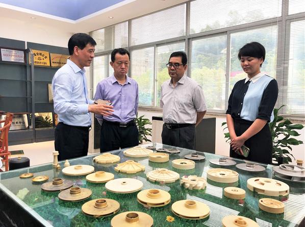 在福安市,陈式海一行先后走访了侨企福建银嘉电机有限公司、福安市九鼎铸造材料有限公司,详细了解了企业疫情防控、复工复产情况以及当前企业经营存在的问题与困难,并参观了产品展览厅、技术研发中心和生产车间。