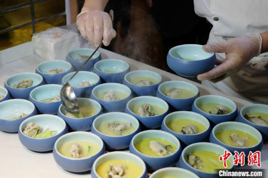第二季药食同源中餐海外推广菜品由江苏省餐饮行业协会执行会长于学荣携同南京金陵饭店、江苏钟山宾馆等酒店的大厨联袂制作。于学荣告诉记者,此次推出的菜品具有淮扬风味特色,以选料严谨、搭配合理,菜式新颖、制作简便,口味独特、保健养生为特点,配以清肺润肺、清热解毒的中药材制作而成。(完)
