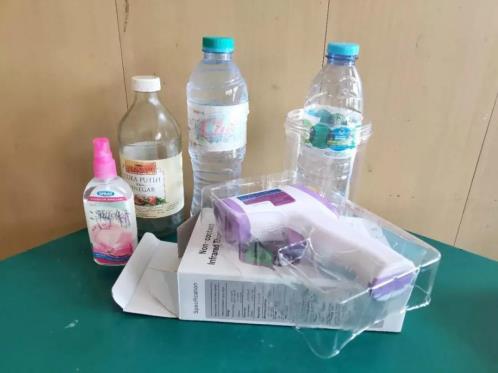 印尼泗水新中三语学校为外派老师们发放的防疫物资。(受访者供图)