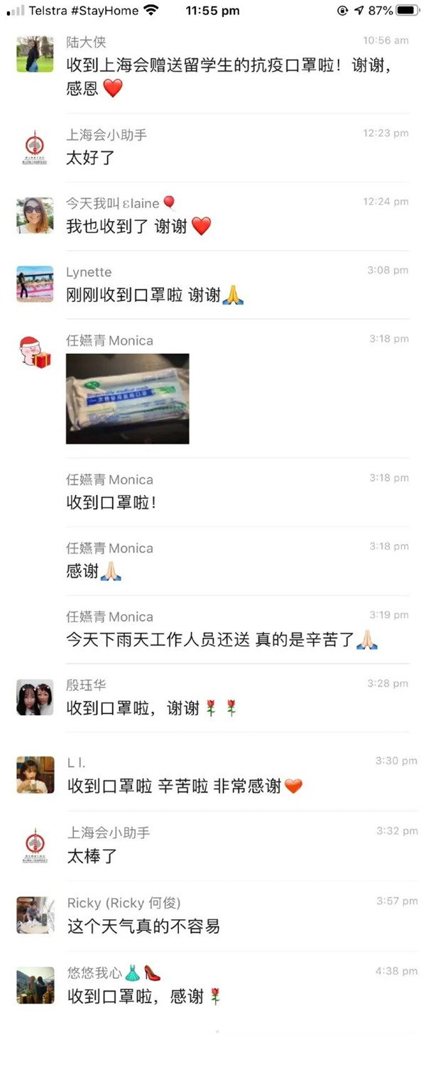 收到口罩的学生们,脸上都展露出了久违的明朗的笑容。非常时期,澳大利亚上海会给他们搭建了一个可以避风挡雨的港湾,让他们感受到家人般的庇护和关怀。目前,已登记的符合条件的留学生均成功收到了抗疫口罩。