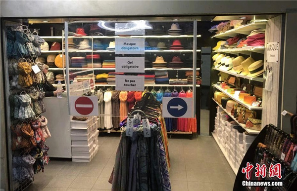 资料图:位于法国巴黎地铁站里的一个小衣帽店,店铺对顾客提出多项卫生要求。中新社记者 李洋 摄