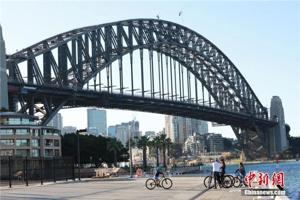 资料图:澳大利亚近期多州、领地有限度放宽限制,民众生活渐渐复苏。图为民众在悉尼海港大桥下休闲。中新社记者 陶社兰 摄