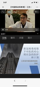 讲座中,江苏省中医院惠侨基地主任常诚就新冠肺炎疫情下中医药对心理应急的防护和干预进行了深入细致地专业讲解。江苏省中医院重症医学科副主任,江苏省中医院第一批援武汉医疗队副队长蒋华为大家分享了他的亲身经历:新冠肺炎的中医药防治实践经验。