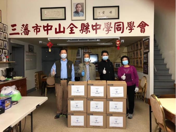目前,新冠病毒肺炎在美国蔓延,口罩等医疗防护物资紧缺,美国加州中山同乡会会长黄建成、顾问孙志中分别捐赠3000个口罩派送给会员。在同乡会常务副会长萧健荣、第一副会长刘金贤、中文书记余志毅及主要职员同心协力下,将口罩派送到缺乏抗疫物资的会员手中。
