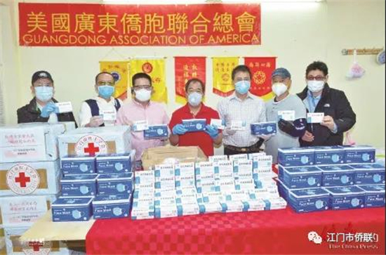 美国广东侨胞联合总会一连三天向会员们派发来自家乡政府的爱心口罩等。(该会提供)
