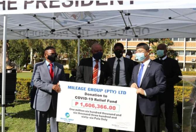 《非洲华侨周报》哈博罗内消息 5月26日上午,博茨瓦纳总统办公室在楼前草坪举行仪式,接受博茨瓦纳里程集团对博政府抗击新冠肺炎疫情捐赠。