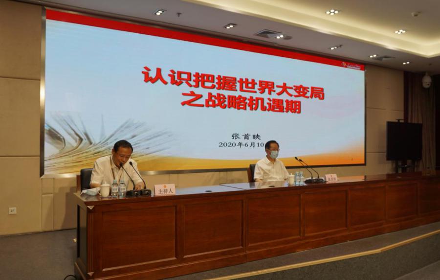 张首映在报告中指出,党的十八大以来,习近平总书记多次指出,要胸怀两个大局,一是当今世界正经历百年未有之大变局,一是我国正处于实现中华民族伟大复兴关键时期。这是一个直面世界进程的重大历史判断,也是一个关乎国际格局、国家发展的重大战略判断,高瞻远瞩,内涵深刻。张首映从经济、科技、政治、国际形势等方面分析了世界百年未有之大变局的总体特点,表示,大变局虽然带来一系列不确定性的挑战,但从总体上看,大变局给我国带来的更多是战略机遇。我们要紧紧抓住重要战略机遇,深化经济体制改革,提升科技创新能力,稳健扎实地建设富强民主文明和谐美丽的社会主义现代化强国,推动构建人类命运共同体。