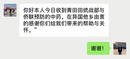 为了做好防疫物资发放工作,叶国平在特殊时期不顾个人安危,认真收验、分发、通知,三十余天不间断地收集有需求的侨胞信息、分发打包、托寄送等。叶国平说,那段时间,一天最多加个五十多人的微信,每天都要接几十个电话。虽然这个工作比较繁琐,需要花费的时间和精力也比较多,但是叶国平总是尽心尽力,没有丝毫怨言。