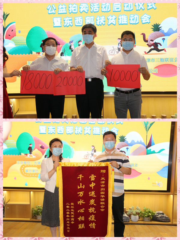 推动会上,市侨联党组成员、二级巡视员李华生宣读了市侨联关于表彰2020“战疫侨爱之星”、2019“侨爱公益之星”的表彰决定,对全市侨联系统去年参与脱贫攻坚及今年抗击疫情中表现突出的先进集体和个人代表进行了现场颁奖。在活动现场,摩天集团董事长苏建民、阿联酋天津商会暨同乡会会长虞曾珍、天津侨联侨菁会、天津市侨商会分别捐赠10万元人民币,天津客家人联谊会捐赠4.8万人民币、天津市侨友商贸有限公司董事长、河东区侨联主席王志红捐赠1万元人民币,他们的捐赠将现场气氛推向高潮,在线观看的部分侨联委员也纷纷通过手机APP捐款,据不完全统计,共筹得善款50余万元人民币全部用于东西部扶贫。