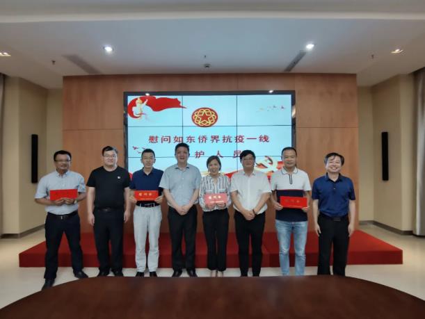 6月17日,南通市侨联主席吴亚军一行赴如东慰问参与一线疫情防控救治工作的侨界先进代表翟建山、王雨卉、缪小建、吴世山等四人,感谢他们为抗疫事业做出的积极贡献,受江苏省侨联、江苏省华侨公益基金会的委托向侨界抗疫先进代表发放慰问金。