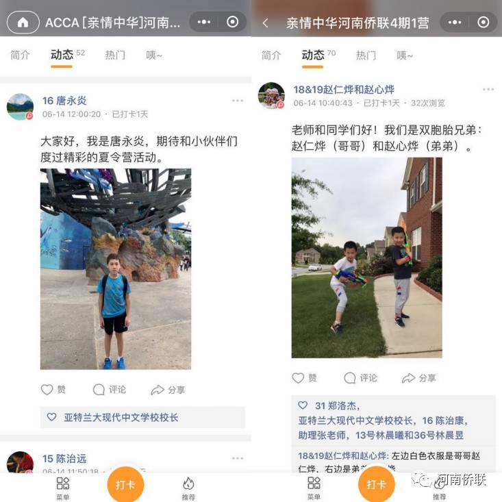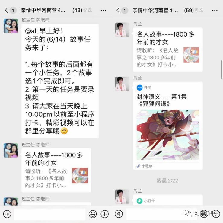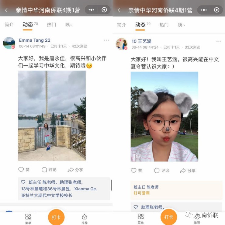 “亲情中华”为你讲故事网上夏令营第四期已经启动,随后推送了第一天的故事,营员们在小打卡里进行自我介绍并完成小任务。祝营员们学习愉快!期待更多精彩分享!