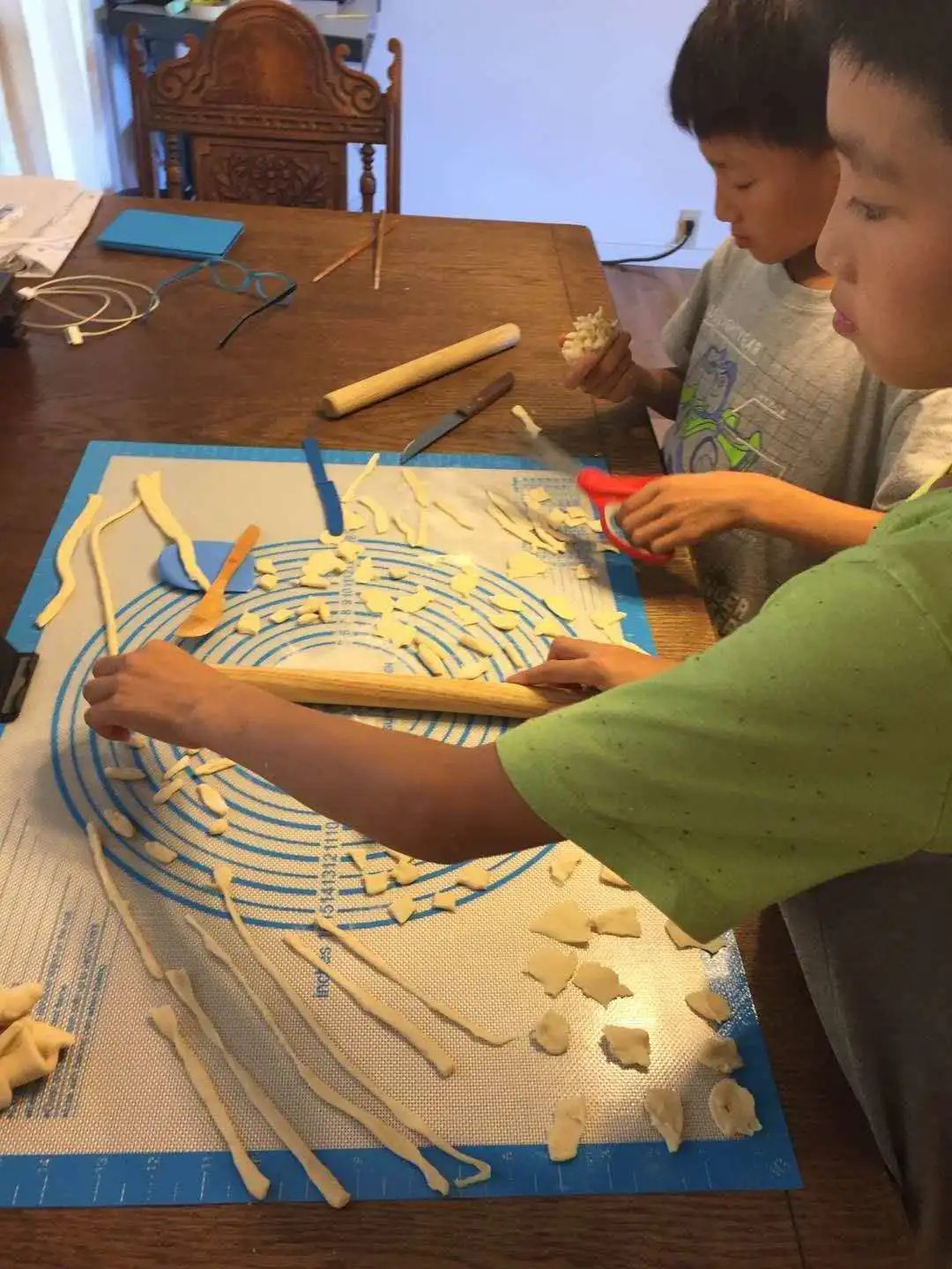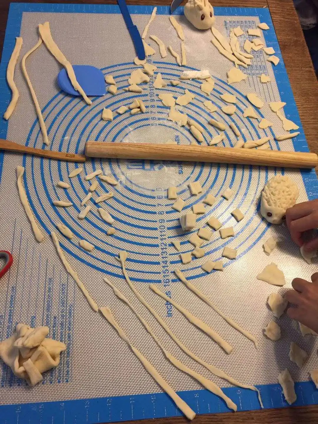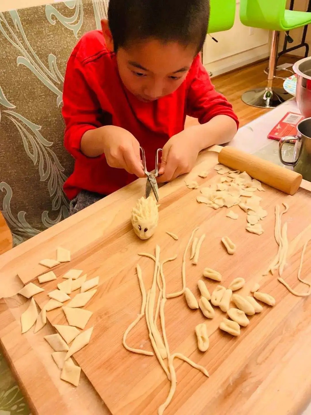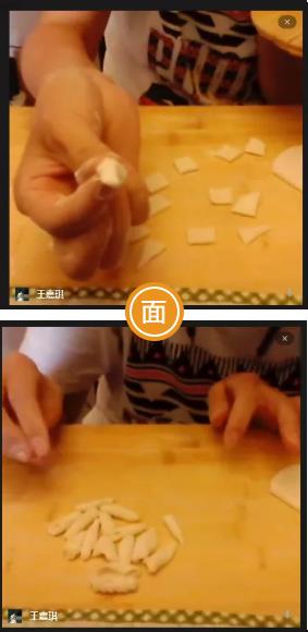 虽然,这次夏令营孩子们无法亲临本地,一饱口福,但是,在老师的“云指导”下,跟着老师示范,自己动手,丰衣足食,做面条、揪面片、猫耳朵、刺猬花馍,似乎更香呢!