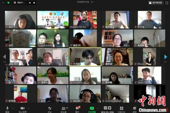 来自美国、德国、英国、爱尔兰、西班牙、葡萄牙、荷兰等国家的168名华裔青少年在线参与网上夏令营“云开营”仪式。(网页截图) 钟欣 摄