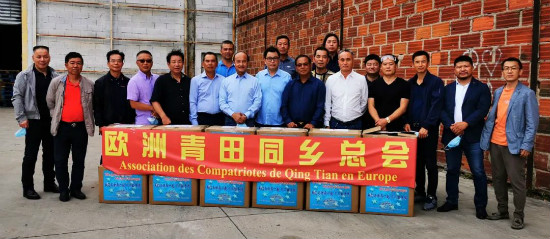 6月30日,欧洲青田同乡总会法国总部成员来到巴黎北郊仓库,将最近接收到的浙江省丽水市人民政府捐助欧洲青田同乡总会法国总部的抗疫防护口罩10万只进行分发,用于旅法丽水籍侨胞的防疫并将部分口罩捐赠当地社会。