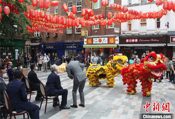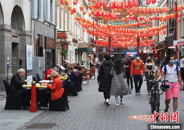 中新社伦敦7月5日电 (高天胤 张平)7月4日,英国酒吧、咖啡店、餐厅、理发店、电影院等商业服务场所全面重启开放,伦敦唐人街举行“重启仪式”,呈现诸多亮点。