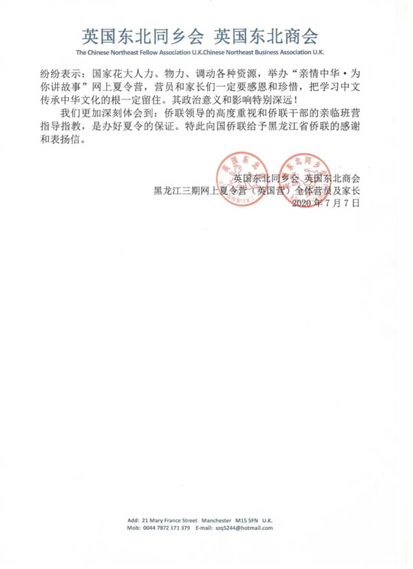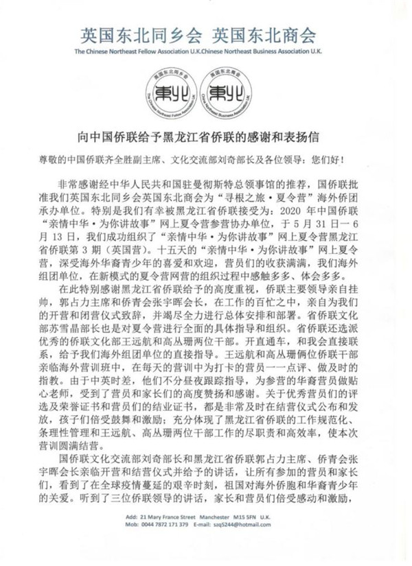 近日,黑龙江省侨联就收到了一封来自海外组营单位的感谢信: