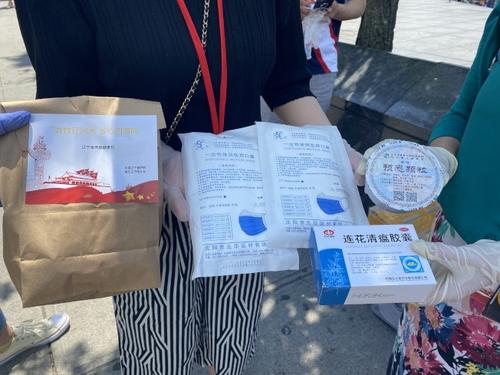 6月20日,美东辽宁同乡会在法拉盛图书馆前为留学生与侨胞送出爱心包。爱心包由中国辽宁省侨联寄出,留学生的健康包有两包口罩、连花清瘟胶囊与辽宁省中医医院提供中药颗粒。24岁的王新彤当日领取健康包。