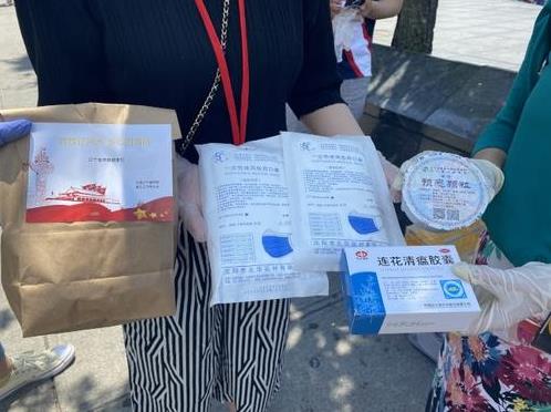 6月20日,美东辽宁同乡会在法拉盛图书馆前为留学生与侨胞送出爱心包。爱心包由中国辽宁省侨联寄出,留学生的健康包有两包口罩、连花清瘟胶囊与辽宁省中医医院提供中药颗粒。24岁的王新彤当日领取健康包。