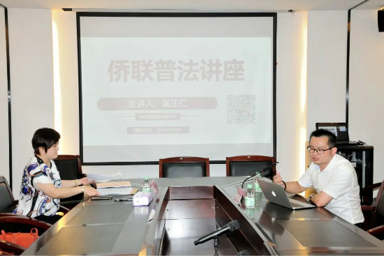 ▲福建臻晟律师事务所吴正仁主任作侨法讲座