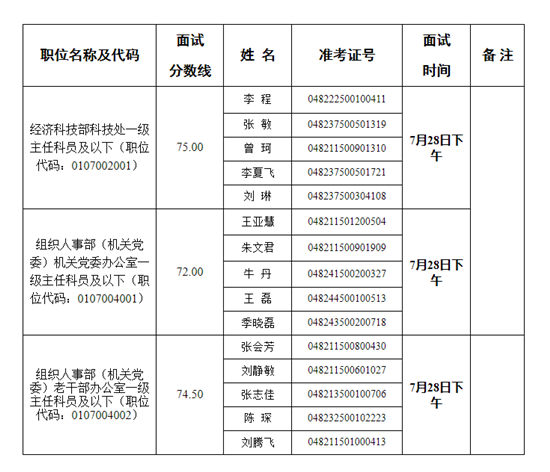 经济科技部科技处、组织人事部(机关党委)机关党委办公室和老干部办公室职位进行面试。
