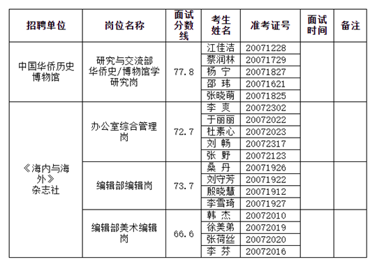 中国华侨历史博物馆研究与交流部华侨史/博物馆学研究岗、藏品部藏品征集与管理岗进行面试。