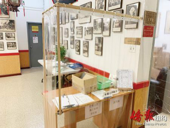 纽约中华公所将于20日恢复各项服务,图为接待处安装的塑料帘防护。(美国侨报网/杨澄雨 摄)