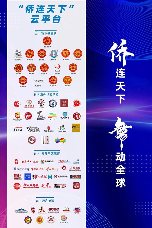 9位来自海外侨团、华文媒体、华文学校联盟的负责人作为海外侨胞代表,以直播连线的方式零距离、零时差的参与其中,与浙江省11个地市侨联的主要负责人一起,启动“侨连天下”云平台,汇聚分布在世界各地的浙侨声音。新上线的“侨连天下”云平台可通过“浙江侨联”公众号底标进入,目前已汇集了市县侨联、华文媒体、华文学校、海外侨团60余家新媒体,未来欢迎更多涉侨新媒体加入。