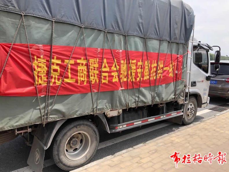 8月2日,捷克中欧工商联合会委托在国内的包增兵先生带领志愿者团队安全把物资送达合肥市和池州市抗洪一线。