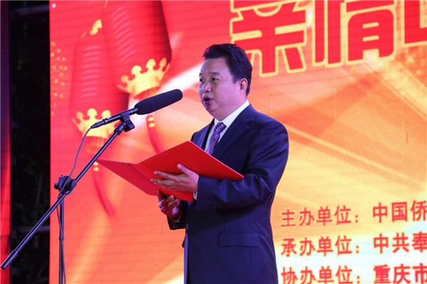 “2019年,习近平总书记考察重庆并发表重要讲话。总书记指出,脱贫攻坚战进入决胜的关键阶段,务必一鼓作气、顽强作战,不获全胜绝不收兵。今天,重温总书记的殷殷嘱托,我们愿与奉节的广大干部群众一道,牢记嘱托、不负使命,锐意进取、奋发有为,为如期全面打赢脱贫攻坚战、如期全面建成小康社会作出新的更大贡献。”“亲情中华”艺术团团长、中国侨联文化交流部副部长邢砚庄在演出前的致辞中说。