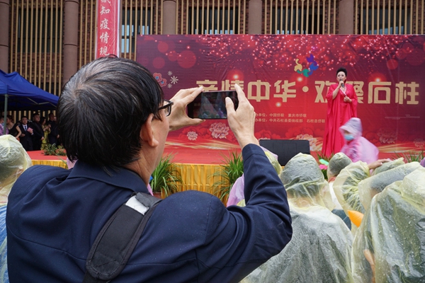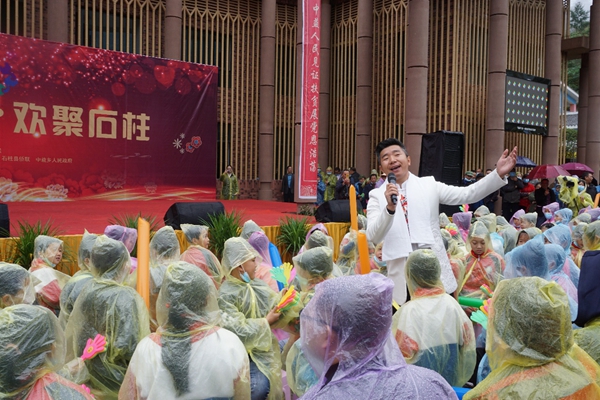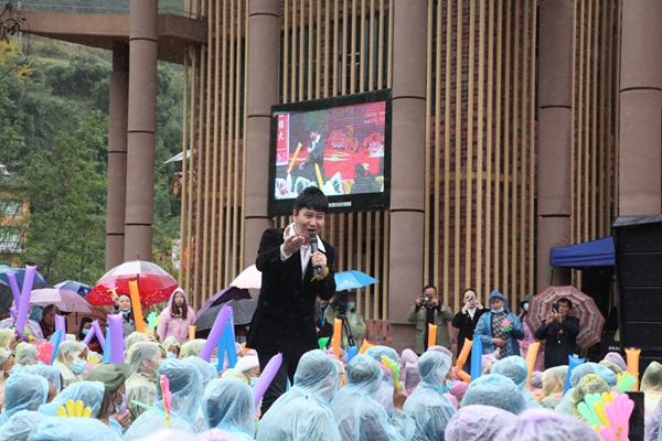 “太阳出来啰喂,喜洋洋啰啷啰……”嘹亮的歌声在渝东的崇山峻岭之间久久回荡,唱不尽人们的喜悦。在“亲情中华·欢聚石柱”文艺演出现场,虽然天空飘着蒙蒙细雨,但是台上的艺术家和台下的老百姓热情高涨。他们相互应和,共同唱起《太阳出来喜洋洋》这段耳熟能详的渝东民歌,抒发着对幸福生活的由衷赞美。