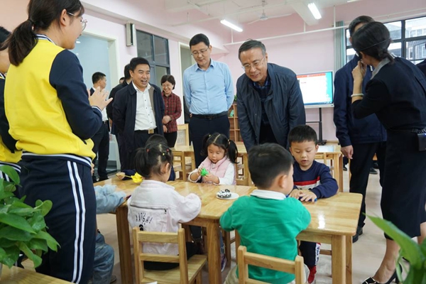 在茶亭镇中心幼儿园,万立骏听取了幼儿园管理和侨联支持幼儿园建设的情况介绍,走进教室,同老师交谈,与小朋友互动。万立骏说,来到广信区,看到工厂复工,学校复学,令人鼓舞,这是中国特色社会主义制度优越性的体现,是习近平总书记英明领导的体现。十年树木,百年树人。教育是百年大计,孩子是国家和民族的未来。培养孩子是一件大事,是党和政府的责任,也是全社会的共同责任。脱贫,不仅是生活上脱贫,还要精神上脱贫。从娃娃抓起、培养孩子、办好教育,是脱贫的长远之计、长远之策,要加大投入,办好人民满意的教育。万立骏指出,教师是高尚的职业,是人类灵魂的工程师。幼儿园要重视教师队伍建设,提高办学水平,遵循教育教学规律,让孩子从小学习做人、提高道德素质、养成良好习惯,打好人生的坚实基础。