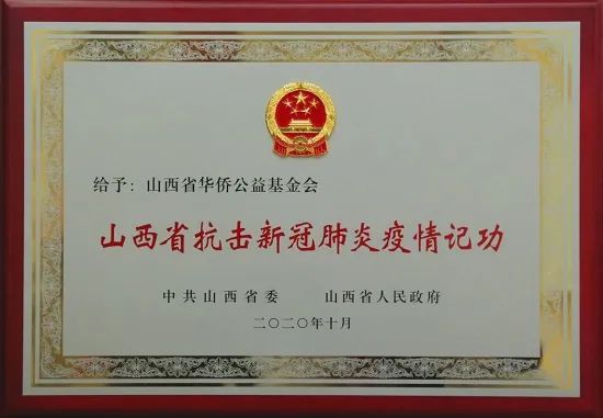 10月23日下午,山西省抗击新冠肺炎疫情表彰大会在太原召开。会议为在山西省抗击新冠肺炎疫情斗争作出重大贡献的先进个人和先进集体进行表彰。山西省华侨公益基金会荣获记功集体、山西省侨商联合会会长李德志荣获嘉奖。
