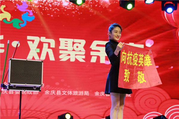 “向抗疫英雄致敬!”中国侨联“亲情中华”艺术团4日晚在贵州省遵义市余庆县首演,以一场特殊的文化盛宴,为余庆人民特别是在抗击新冠肺炎疫情中挺身而出的白衣天使带来关心和祝福。
