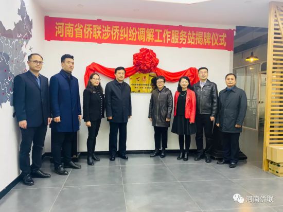 11月17日下午,河南省侨联首家涉侨纠纷调解服务工作站在郑州正式成立。中国侨联权益保障部长张岩、省侨联副主席王鹏杰、北京隆安(郑州)律师事务所主任赵楠等共同为工作站揭牌。