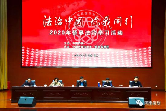 为进一步增强归侨侨眷的法律意识,切实提高依法护侨、依法维权能力水平,2020年11月17日至20日,由中国侨联主办,中国侨联法顾委和河南省侨联承办的“法治中国你我同行”—2020年侨界法治学习活动在郑州举行。河南省各级侨联干部、省侨联所属社团代表,高校侨联和“侨胞之家”干部、法律工作者,部分新侨人士和归国留学人员近200人参加学习。