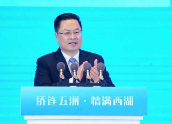 浙江省副省长朱从玖在致辞中表示,浙江是全国重点侨乡和侨务资源大省,侨胞分布广、结构新、贡献大。改革开放以来,广大归侨侨眷和海外侨胞以拳拳赤子之心情系桑梓、奉献社会,成为推动浙江改革开放和经济社会发展的重要力量。特别是在今年抗击新冠肺炎疫情的过程中,广大侨胞不遗余力支持浙江打赢疫情防控阻击战,再一次用实际行动诠释了情系祖国、心系家乡的大爱情怀,用同舟共济、共渡难关的赤子之心谱写了一曲感人赞歌。希望广大侨商进一步抓住浙江发展的战略机遇,在新一轮科技革命和产业变革发展中,为浙江创新发展注入新的动力,实现互利共赢。浙江省将不断为广大侨商来浙投资兴业提供政策支持和优质服务,营造良好的营商环境。