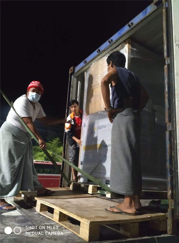 今年在新冠疫情的影响下,项目执行方不能亲自去缅甸进行项目的前期考察工作,缅甸的疫情也给我们项目的选址、报关、清关等工作造成很大障碍,但在缅甸政府、中华人民共和国驻缅甸联邦共和国大使馆、当地侨团及华侨华人代表胡瑞星女士等各方大力支持下,使得澜湄合作光伏离网发电项目组件顺利送抵缅甸。据悉,该区域共14栋综合机构楼房,目前该学院每天停电2-3小时左右,星期日停电5小时。此光伏项目安装使用后,将大大缓解该学院的用电短缺问题。