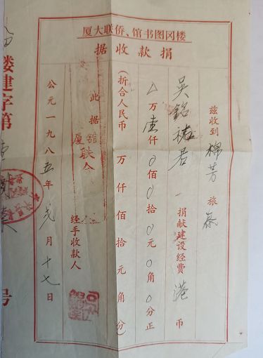 上世纪80年代华侨捐资家乡的捐款收据以及“海外家书”。这些一手资料对研究华侨历史具有一定的价值。