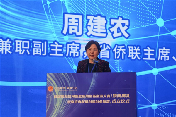 12月27日,由中国侨联指导,江苏省侨联、南京市侨联、南京信息工程大学主办,南京市栖霞区人民政府承办的创业中华·筑梦江苏——首届国际空间智能应用创新创业大赛颁奖典礼在南京成功举办。中国侨联副秘书长、经济科技部部长赵红英出席并致辞。江苏省侨联主席、党组书记周建农出席并讲话。南京市委常委王华,南京市侨联党组书记毛银玲,中国工程院院士、武汉大学副校长李建成,南京信息工程大学副校长戴跃伟,南京市栖霞区委副书记、区长王生,省侨联新侨创新创业联盟理事长谢东,省、市、区有关部门负责人,空间智能应用领域知名专家,驻宁高校侨联和校友会代表,省有关重点园区代表、新侨创新创业基地代表及新侨企业代表等近200人参加。
