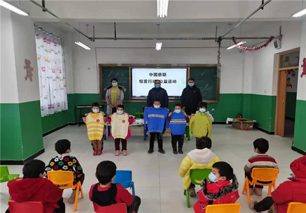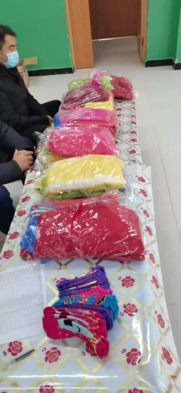 12月29日,中国侨联的爱心织品送达阿克苏地区温宿县佳木镇加依村,由新疆自治区侨联的“访惠聚”驻村工作队把这些编织爱心织品发给了加依村幼儿园的56名儿童。孩子们纷纷感动地说:感谢中国侨联的爱心,为我们送来温暖,我们要好好学习,长大后以优异的成绩来报答你们的爱心。