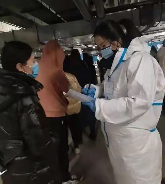 河北外国语学院侨联副主席、河北外国语学院西意葡语言学院教师白珊珊勇于担当,主动而为,先后完成了上门通知居民到指定地点进行二次核酸检测、在现场登记住户信息、扫描检测试管二维码组织人员检测、后期统计台账、通知遗漏住户进行二次检测等工作。并且在结束自己的工作之后,还主动接替需要休息的其他工作人员和志愿者,帮助他们完成后续工作。