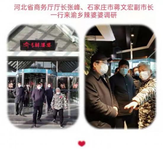 河北省商务厅厅长张峰、石家庄市蒋文红副市长一行,就疫情期间的餐饮保供调研了渝乡辣婆婆和平路店和渝乡辣婆婆川越食空店。