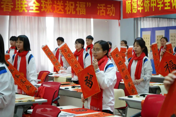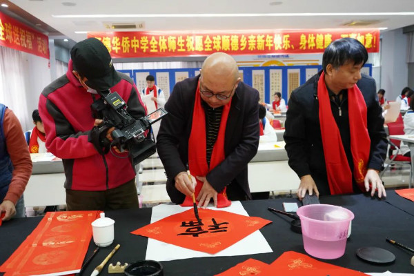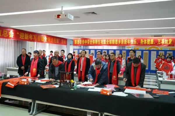 据悉,迎新年写春联活动将拍摄成专题视频,在世界顺德联谊总会云平台上向全球乡亲播放。届时,全球顺德乡亲将真切感受到来自家乡、来自顺德华侨中学的真挚祝福。