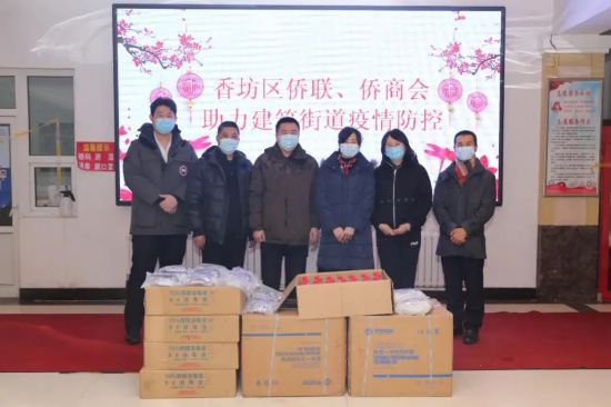 1月25日下午,香坊区侨联主席杨戈、副主席李庆宇,区侨商会常务副会长温培伦一同来到香坊区建筑街道,为“侨胞之家”送去了100套防护服、175瓶酒精消毒液以及一次性手套和防护眼镜等防疫物资。