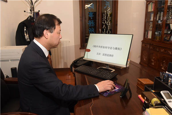 牛年新春将至,中国侨联法顾委海外委员、吴氏律师事务所吴恩斌律师,应我驻意大利使馆邀请,以“海外侨胞如何守法与维权”为题,在线作公益讲座,解答旅意侨胞、留学生关心的法律和维权问题,受到广泛好评。