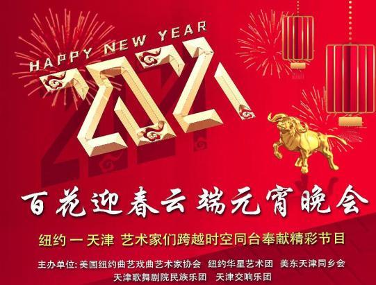 这场主题为“纽约-天津2021百花迎春云端元宵晚会”由美国纽约曲艺戏曲艺术家协会、纽约华星艺术团、美东天津同乡会、中国天津歌舞剧院民族乐团、天津交响乐团共同主办。