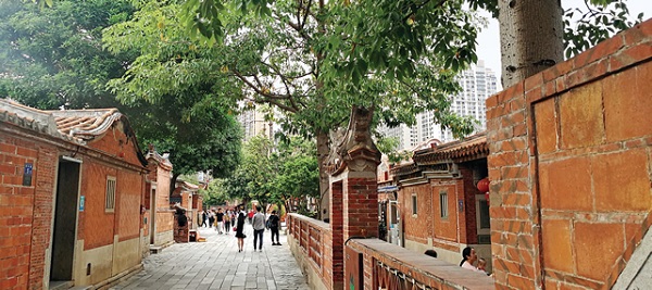 美食街里的土笋冻、牡蛎煎、拳头拇,五颜六色,形态各异。小杨吃时先看、后探,最爱的是润饼菜,手抓一卷,心思徘徊。此菜在新加坡亦随处可见,名唤“润饼卷”,润饼里的菜色较单一,表皮偏硬,不似五店市的温润、甜美、不油不腻。润饼菜在闽南因有纪念先人的意味,流传广泛。表皮偏硬固然与制作润饼的面粉、手法有差异,然而,没有坐在八仙桌上品尝,少了仪式感,走味亦在情理之中。