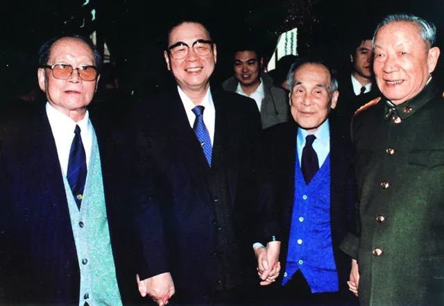 2002年1月1日,全国政协举行的茶话会上,庄世平与全国人大委员长李鹏、原副总理谷牧、国防部长迟浩田合影留念