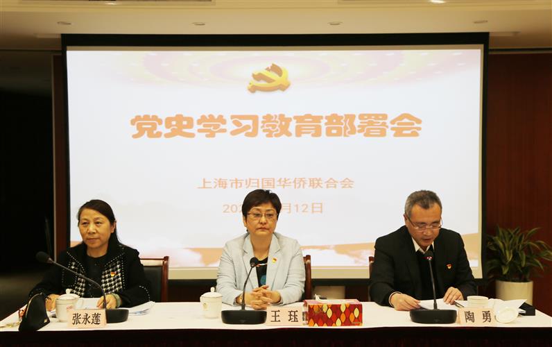 3月12日下午,上海市侨联召开党史学习教育部署会。上海市委统战部副部长、市侨联党组书记、市政府侨办主任王珏出席会议并讲话,市侨联副主席徐大振,市侨联副主席、机关党委书记陶勇,市委统战部直属机关党委一级调研员杨云庆出席会议,市侨联党组成员、机关党委专职副书记张永莲主持会议,市侨联全体机关干部,华侨基金会、海促会等社会组织党员参加会议。